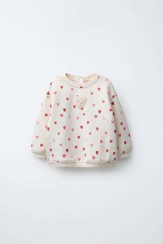 ZARA ТОЛСТОВКА С СЕРДЕЧКАМИ, ЭКРЮ