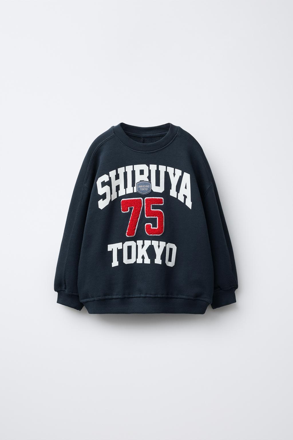 ZARA ТОЛСТОВКА С ТЕКСТОМ И НАШИВКОЙ, СИНИЙ
