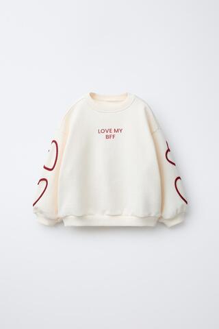 ZARA ТОЛСТОВКА С ТЕКСТОМ И СЕРДЦАМИ, ЭКРЮ
