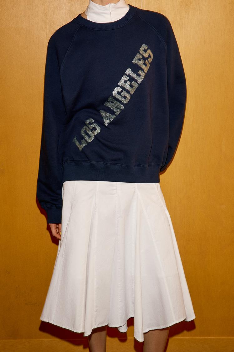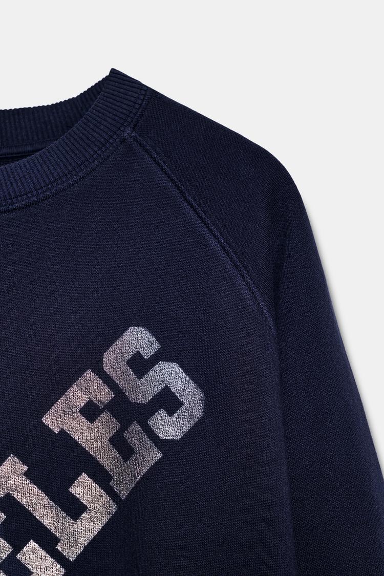 ZARA ТОЛСТОВКА С ТЕКСТОМ ИЗ ФОЛЬГИ, МОРСКОЙ СИНИЙ