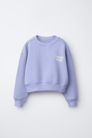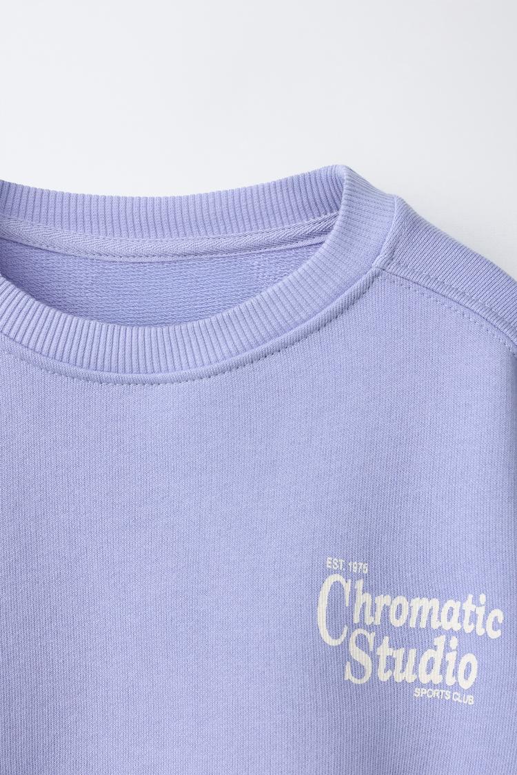 ZARA ТОЛСТОВКА С ТЕКСТОВЫМ ПРИНТОМ, СИНИЙ