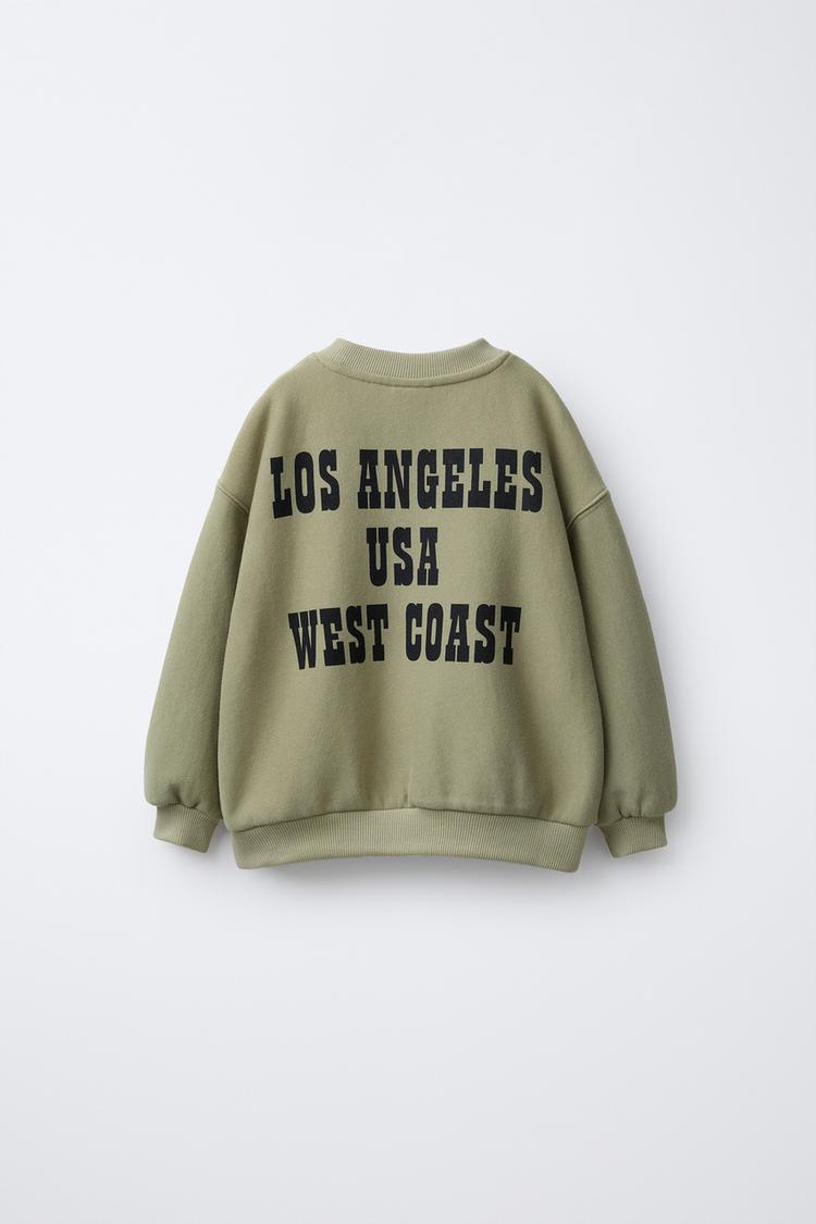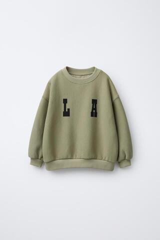 ZARA ТОЛСТОВКА С ТЕКСТОВЫМ ПРИНТОМ, СВЕТЛЫЙ ХАКИ