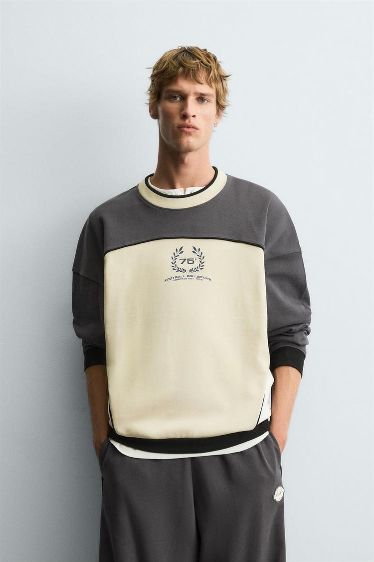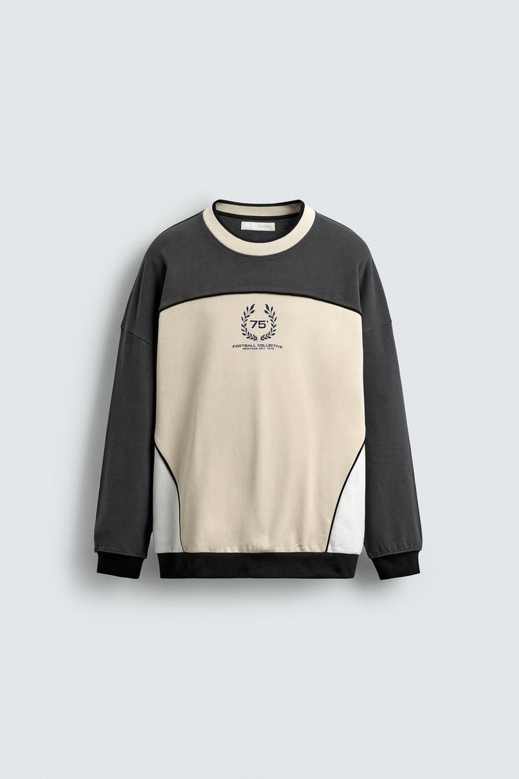 ZARA ТОЛСТОВКА С ЦВЕТНЫМИ БЛОКАМИ И ПРИНТОМ, АНТРАЦИТОВО-СРЫЙ