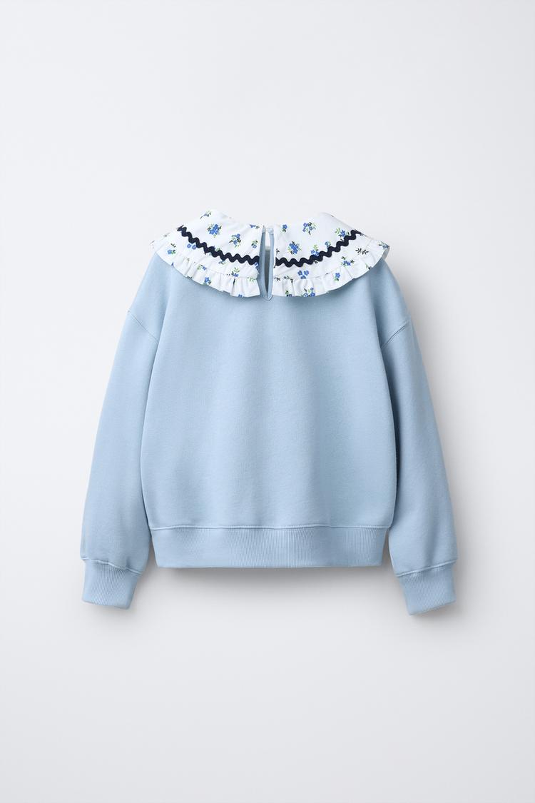ZARA ТОЛСТОВКА С ВОРОТНИКОМ-ХОМУТОМ, ВОЛНИСТЫМ КРАЕМ И ВЫШИВКОЙ, НЕБЕСНО-ГОЛУБОЙ