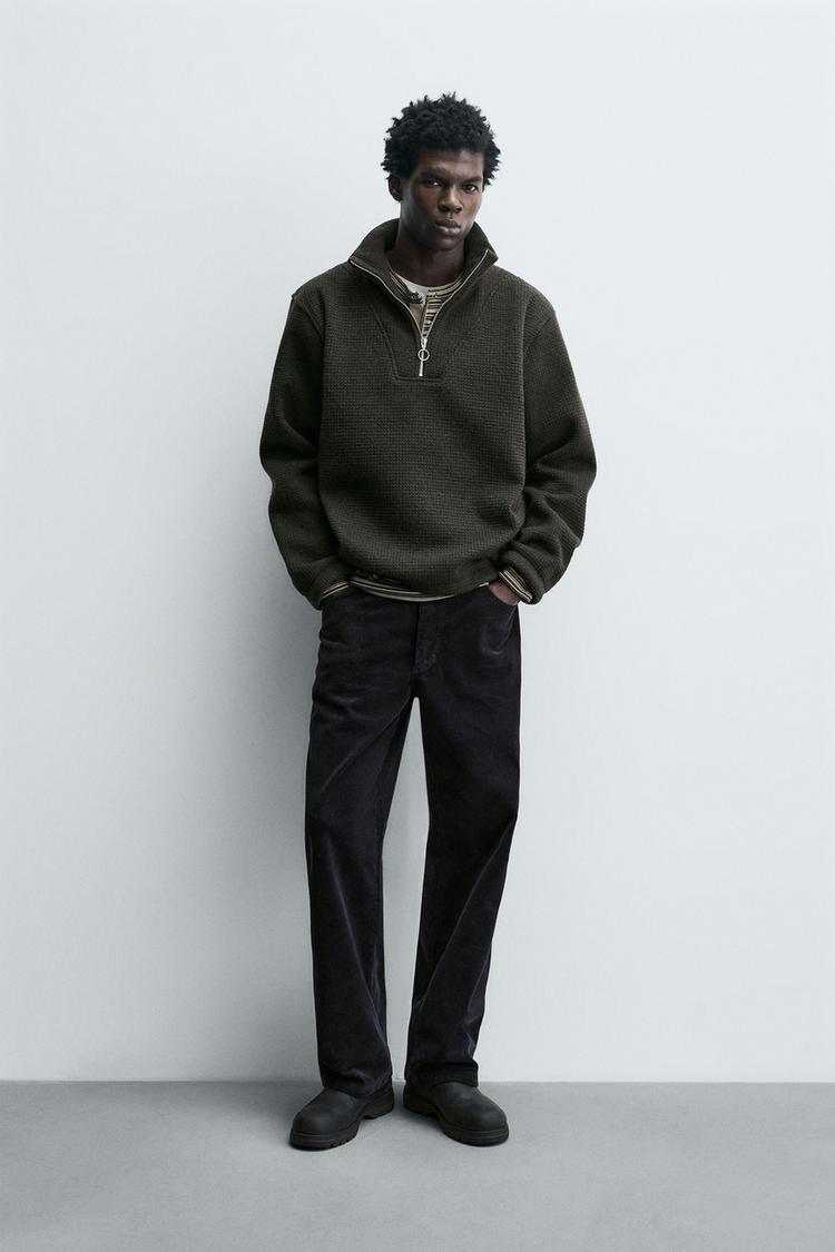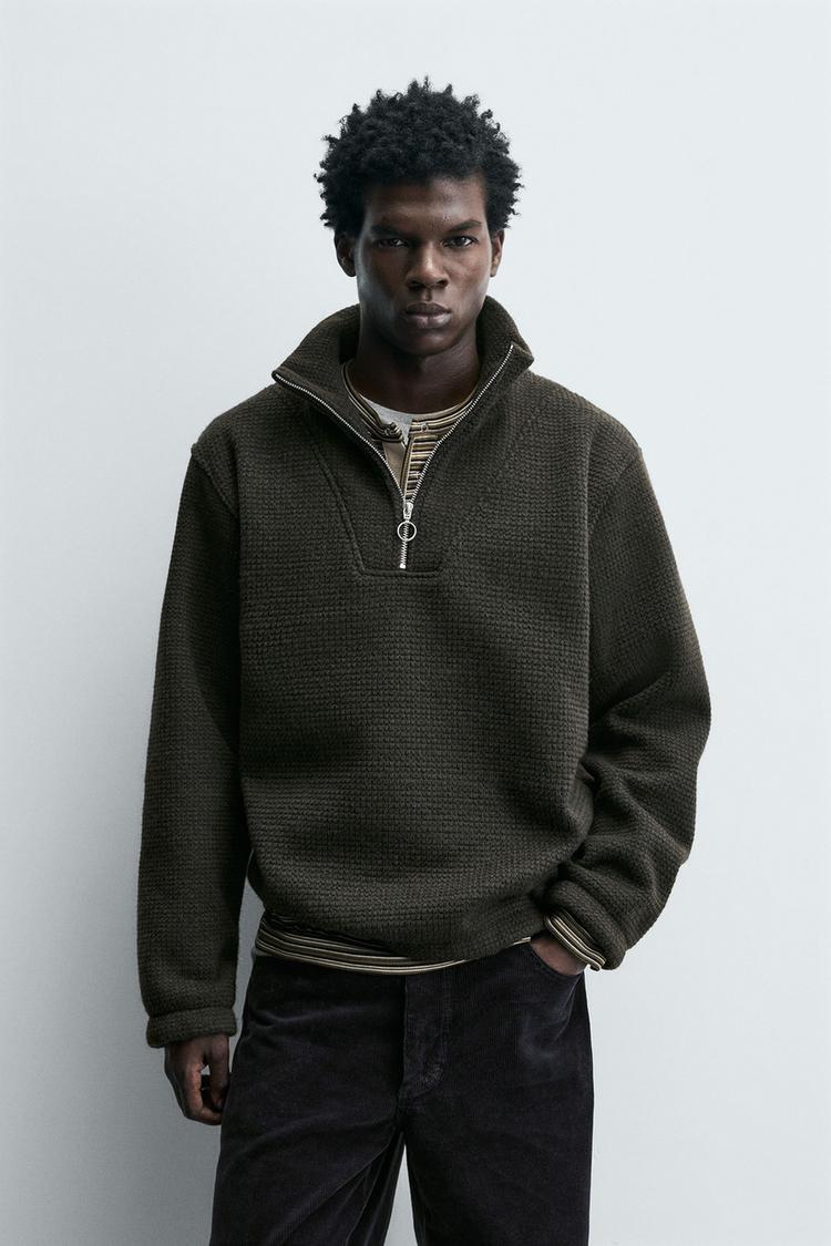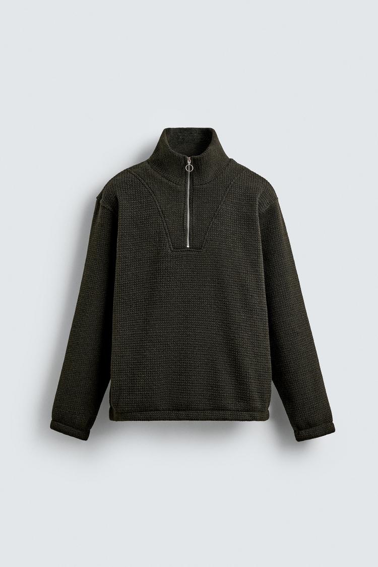 ZARA ТОЛСТОВКА С ВОРОТНИКОМ НА МОЛНИИ И СТРУКТУРОЙ, ТЕМНО-ЗЕЛЕНЫЙ