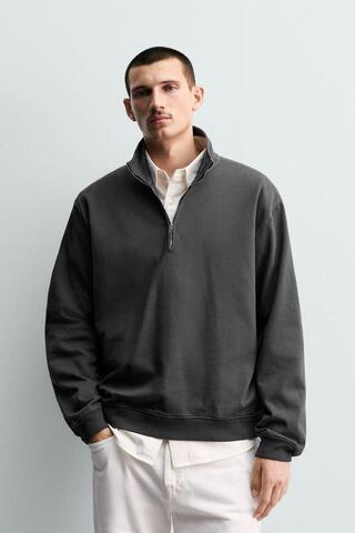 ZARA ТОЛСТОВКА С ВОРОТНИКОМ НА МОЛНИИ, ТЕМНО-СЕРЫЙ