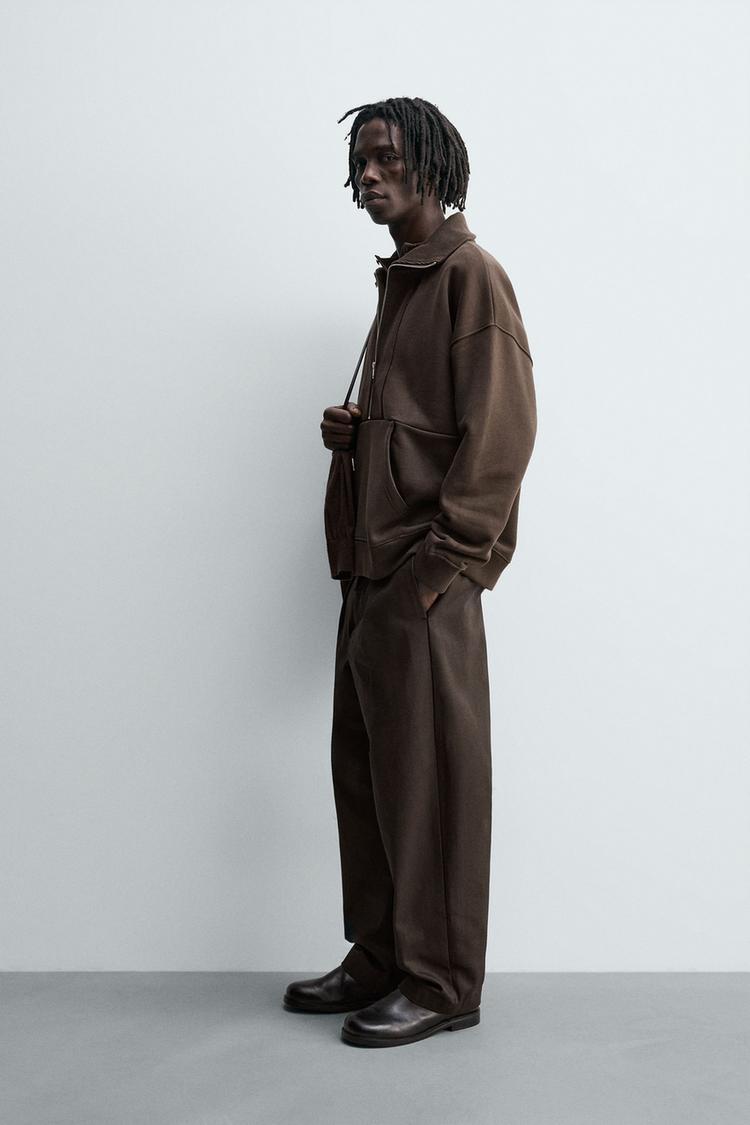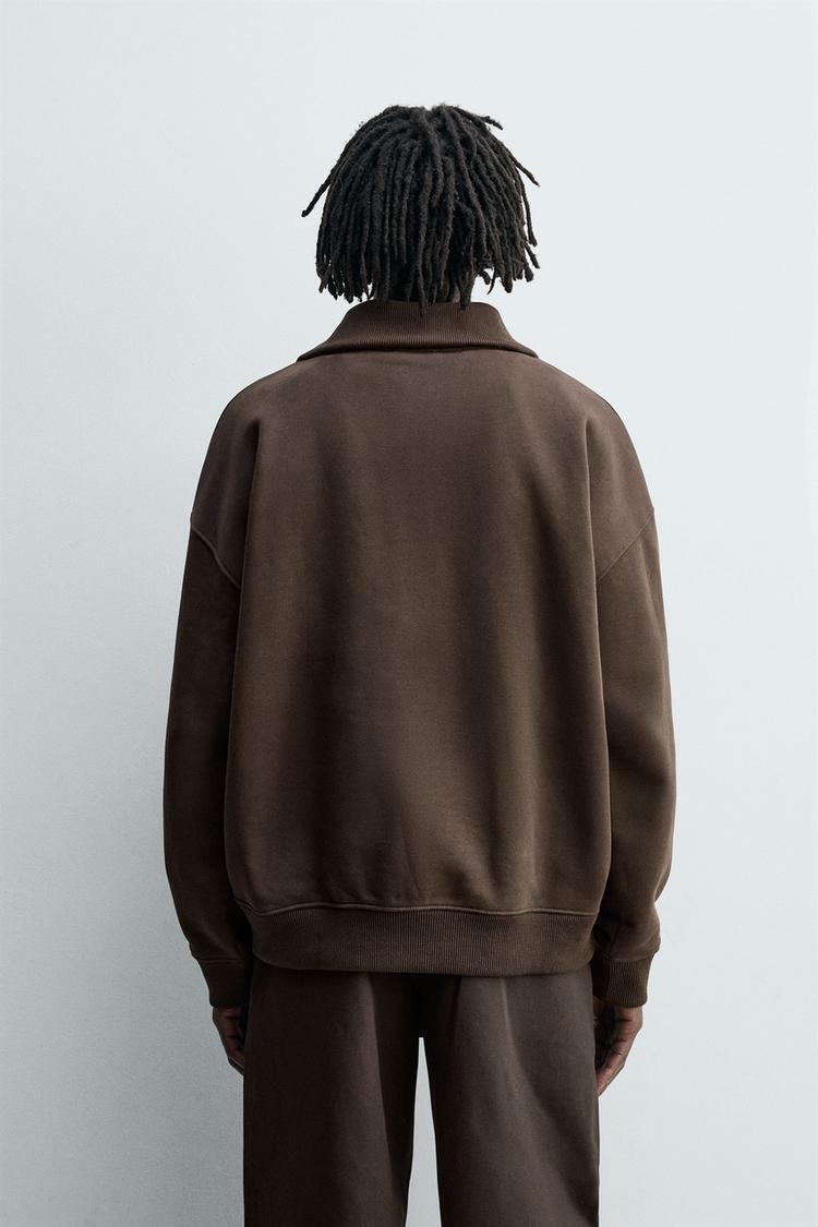 ZARA ТОЛСТОВКА С ВОРОТНИКОМ НА МОЛНИИ В РУБЧИК, ШОКОЛАДНЫЙ