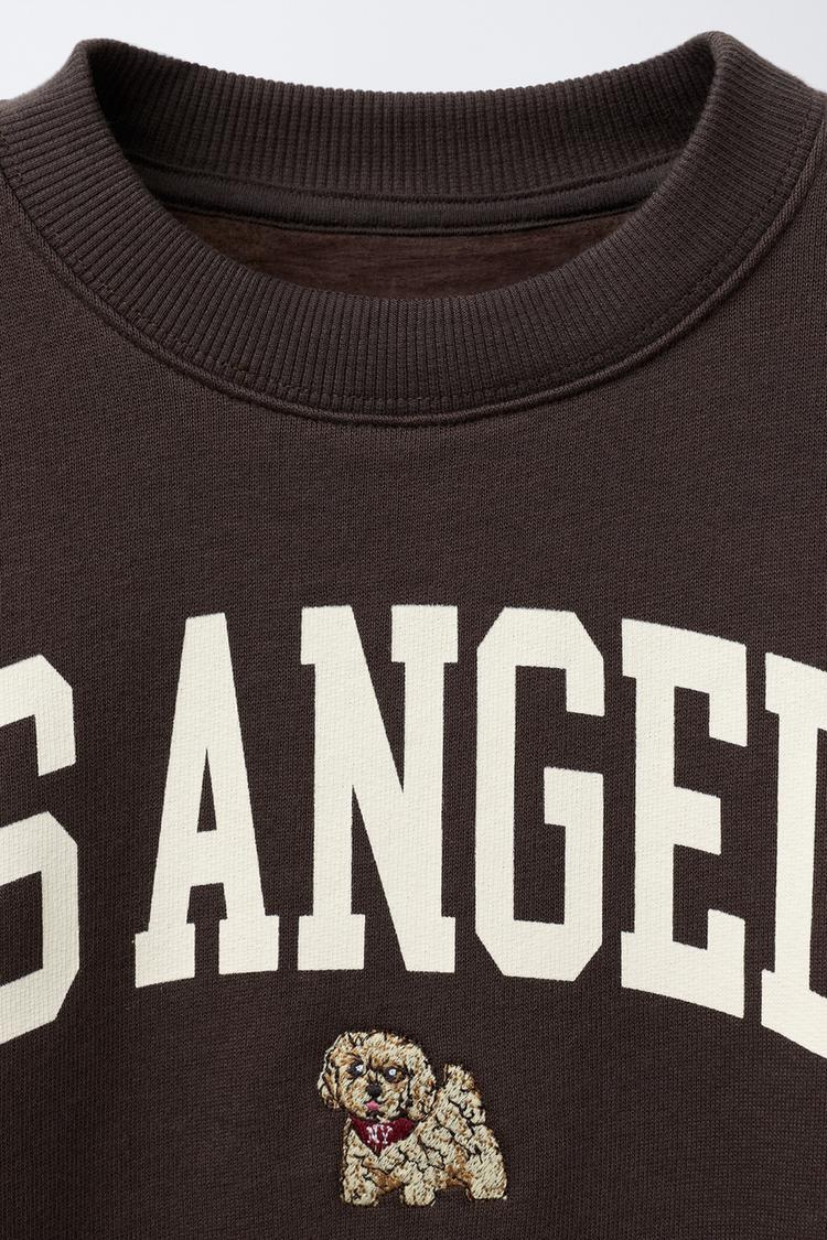 ZARA ТОЛСТОВКА С ВЫШИТОЙ НАДПИСЬЮ, КОРИЧНЕВЫЙ