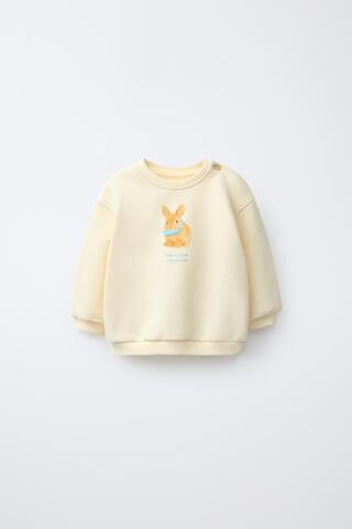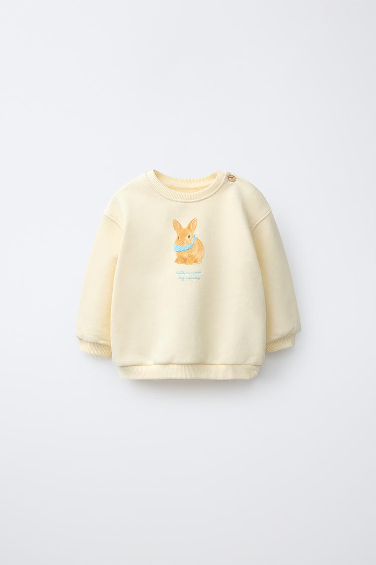 ZARA ТОЛСТОВКА С ВЫШИТЫМ КРОЛИКОМ, СВЕТЛО-ЖЕЛТЫЙ