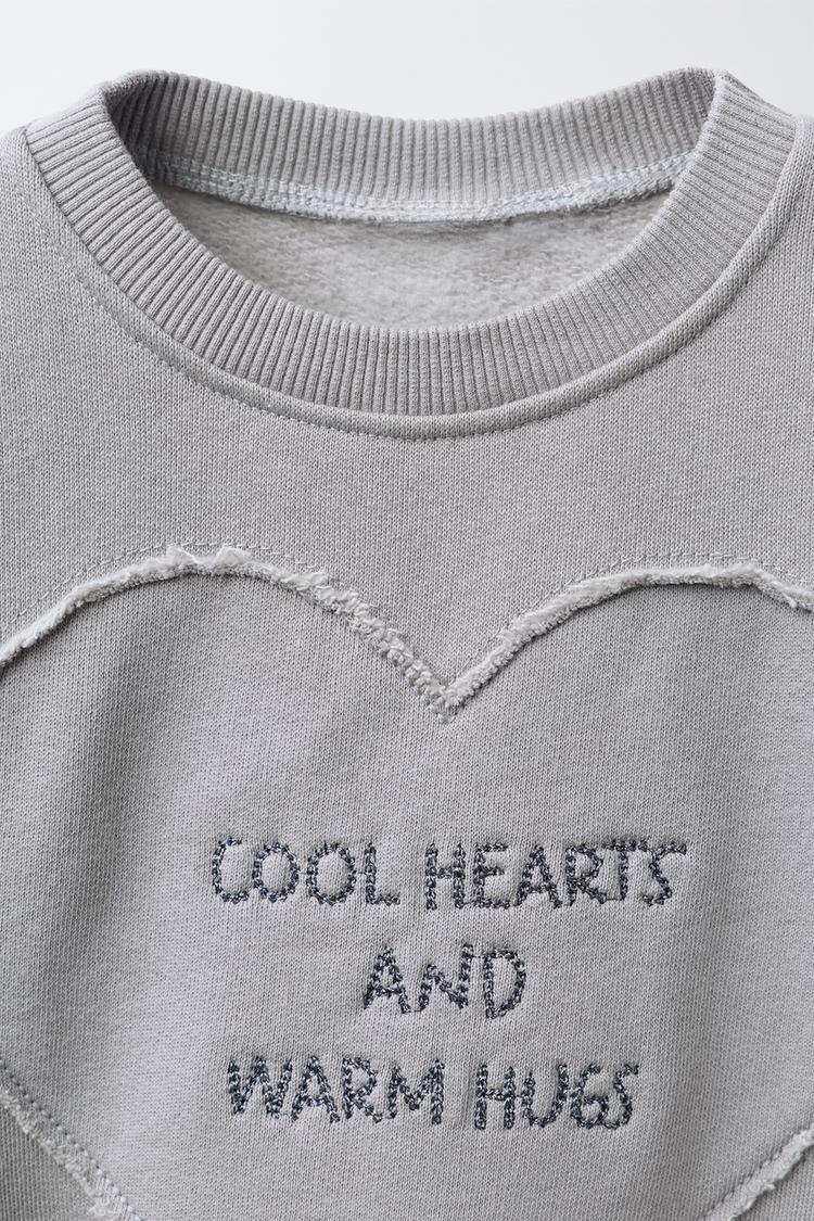 ZARA ТОЛСТОВКА С ВЫШИТЫМ СЕРДЦЕМ И НАДПИСЬЮ, МЯГКИЙ СЕРЫЙ