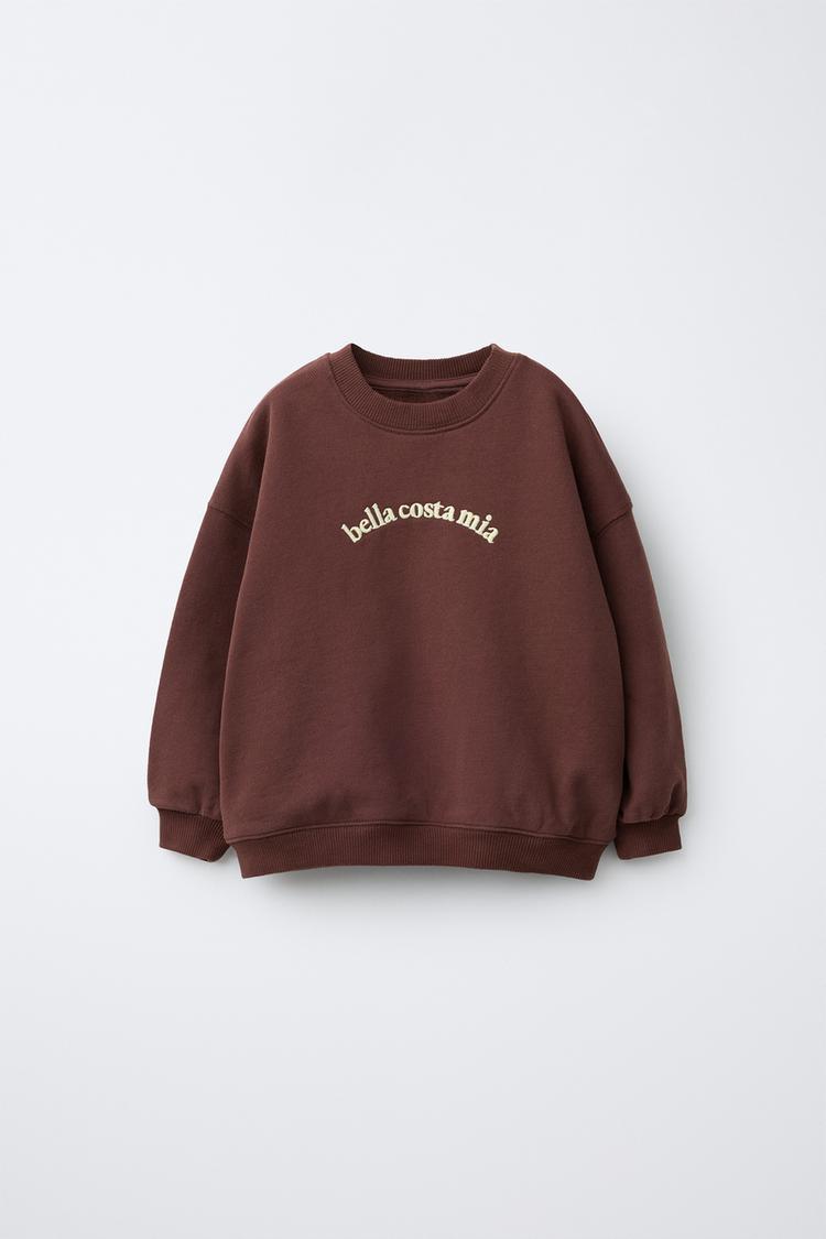 ZARA ТОЛСТОВКА С ВЫШИТЫМ ТЕКСТОМ, КОРИЧНЕВЫЙ