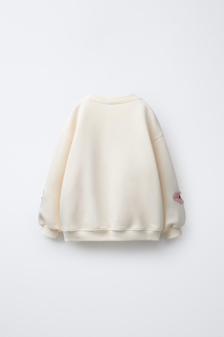 ZARA ТОЛСТОВКА С ВЫШИТЫМИ ЦВЕТАМИ, ЭКРЮ