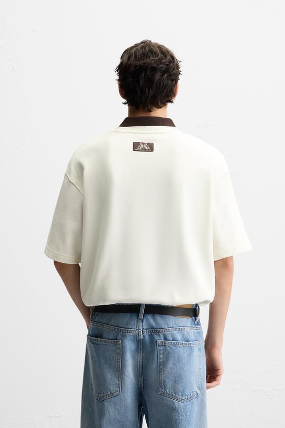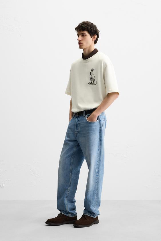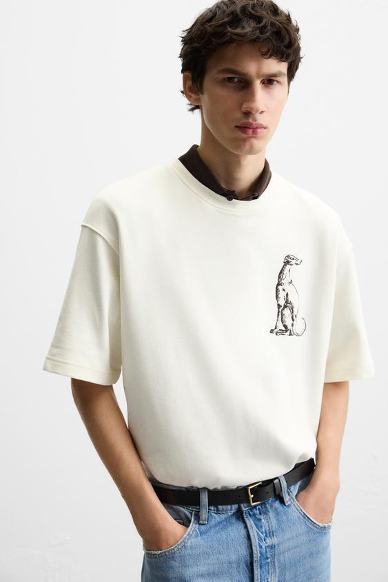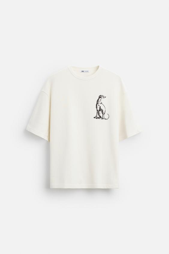 ZARA ТОЛСТОВКА С ВЫШИВКОЙ "БОРЗАЯ", ЖЕЛТОВАТО-БЕЛЫЙ