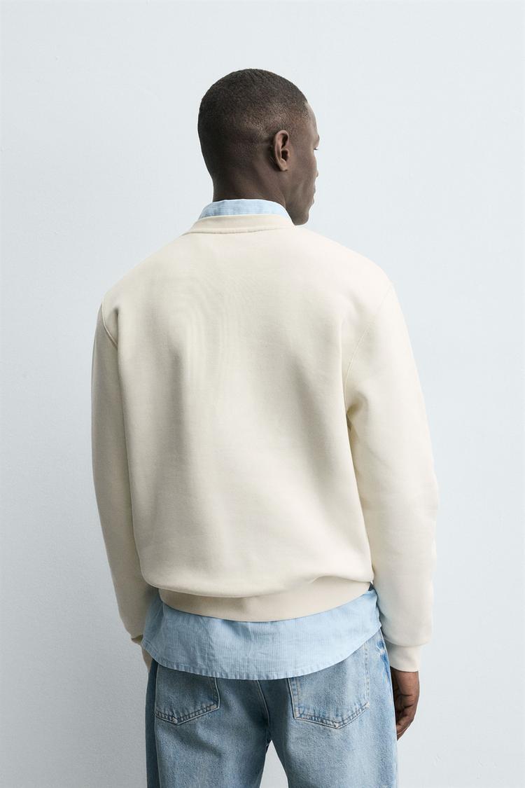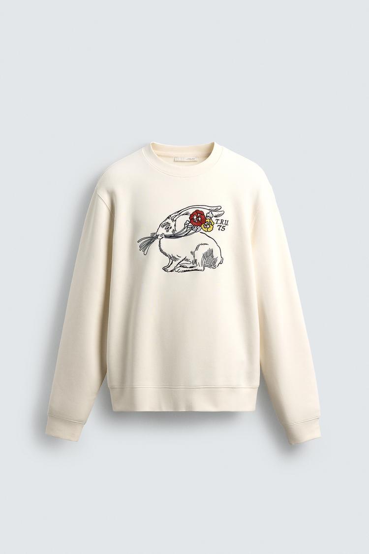 ZARA ТОЛСТОВКА С ВЫШИВКОЙ «КРОЛИК», ЖЕЛТОВАТО-БЕЛЫЙ