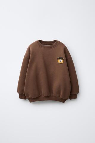 ZARA ТОЛСТОВКА С ВЫШИВКОЙ «МЕДВЕДЬ», КОРИЧНЕВЫЙ