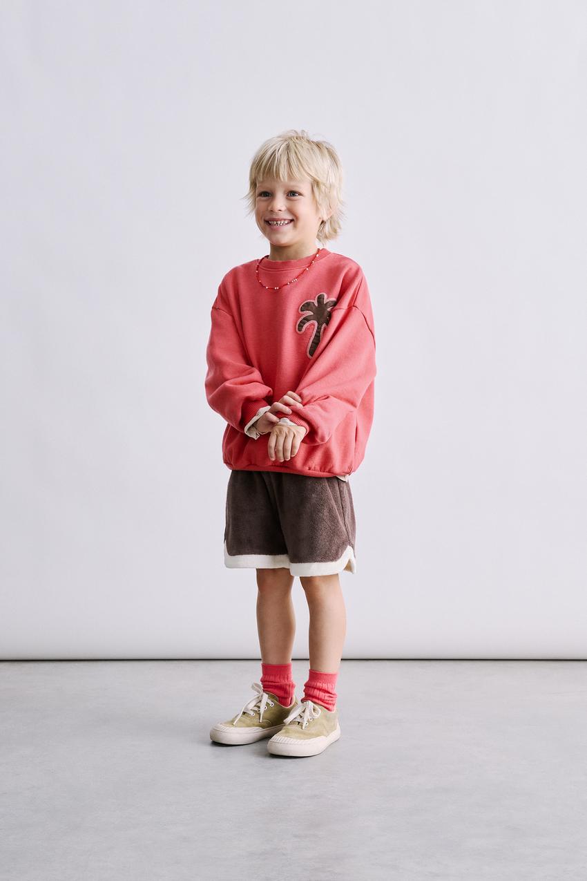ZARA ТОЛСТОВКА С ВЫШИВКОЙ ПАЛЬМЫ, ЦВЕТ ФУКСИИ