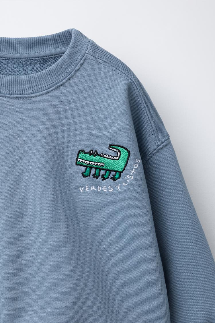 ZARA ТОЛСТОВКА С ВЫШИВКОЙ, ВЫЦВЕТШИЙ СИНИЙ