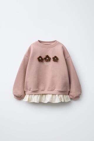 Толстовка с круглым вырезом и длинными рукавами. Детали в рубчик. Низ с отделкой в виде рубашки. Цветочный принт спереди. Теплая и мягкая внутренняя отделка. Ткань на 83% состоит из хлопка.
