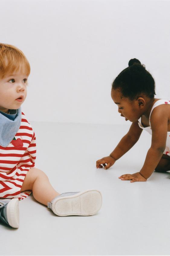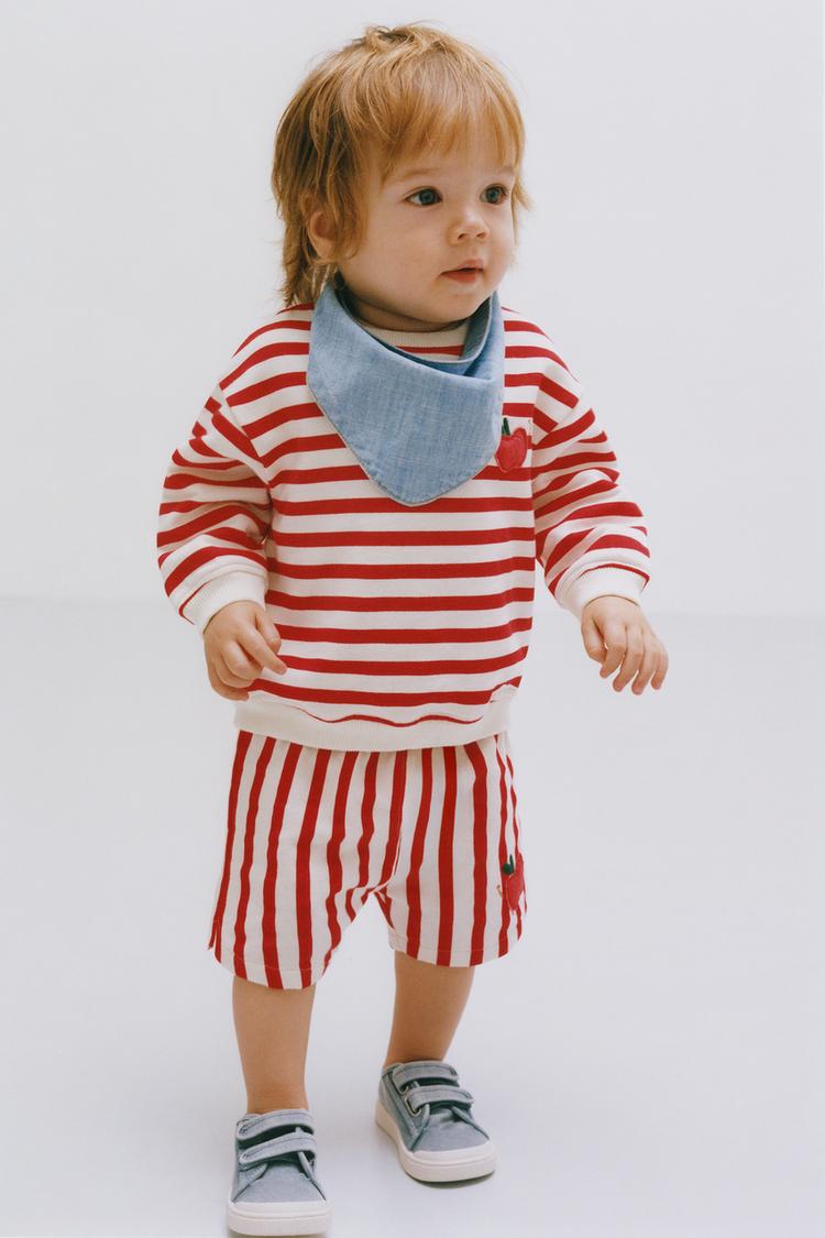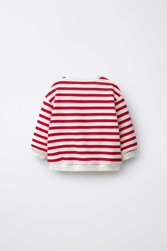 ZARA ТОЛСТОВКА В ПОЛОСКУ С АППЛИКАЦИЕЙ «ЯБЛОКО», КРАСНЫЙ/БЕЛЫЙ