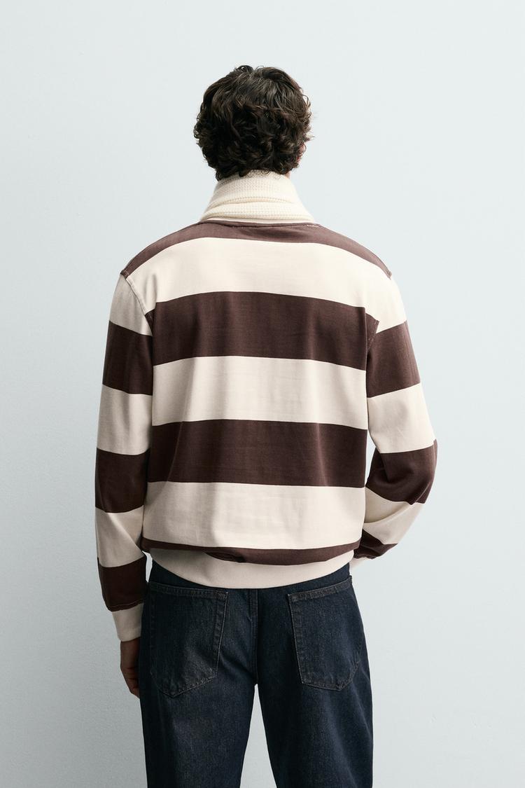 ZARA ТОЛСТОВКА В ПОЛОСКУ С КОНТРАСТОМ, КОРИЧНЕВЫЙ/ЭКРЮ