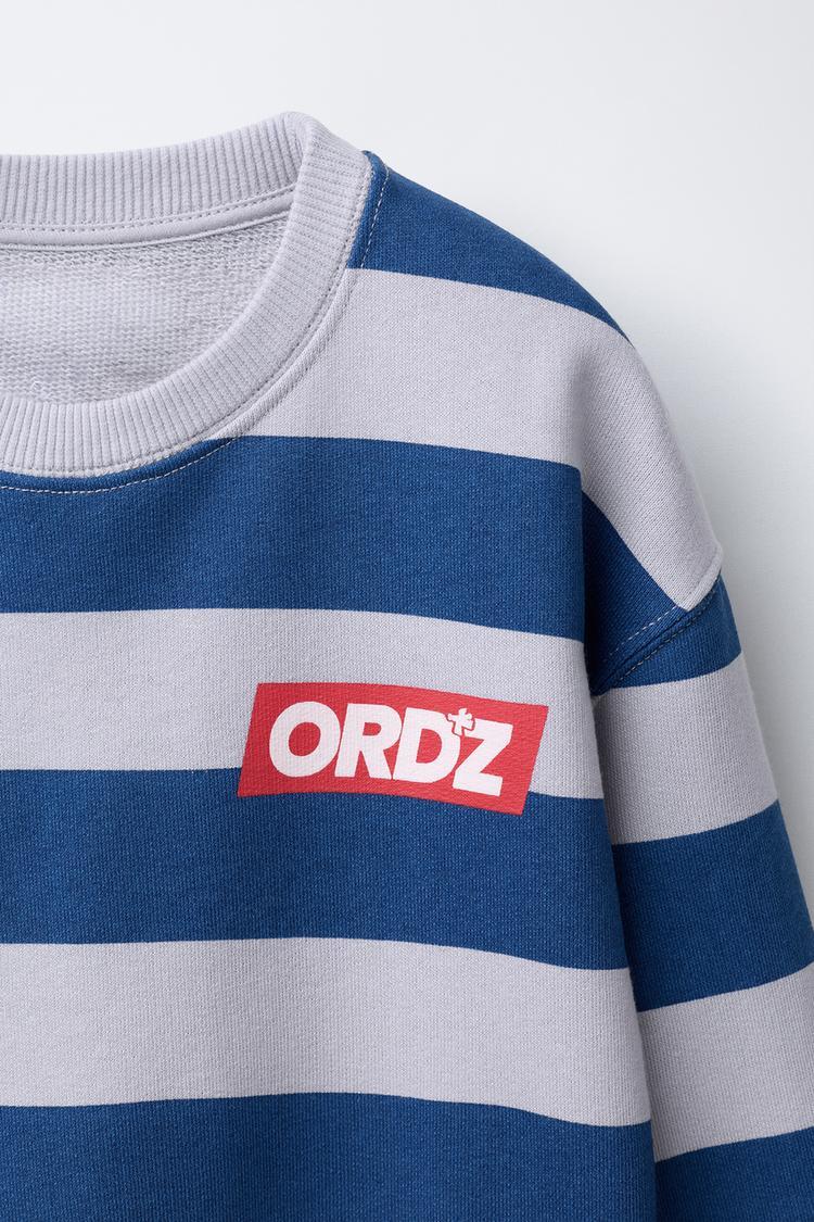ZARA ТОЛСТОВКА В ПОЛОСКУ С НАДПИСЬЮ, СИНИЙ