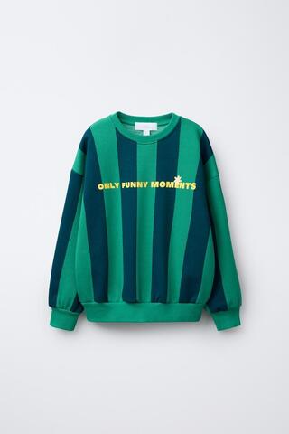 ZARA ТОЛСТОВКА В ПОЛОСКУ С НАДПИСЬЮ, ЗЕЛЕНЫЙ