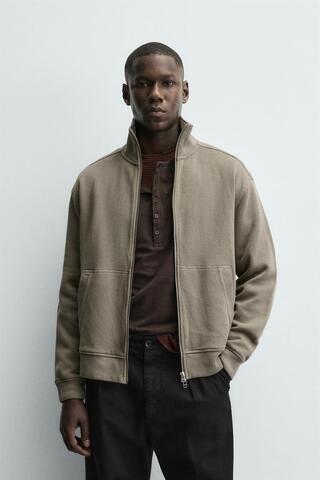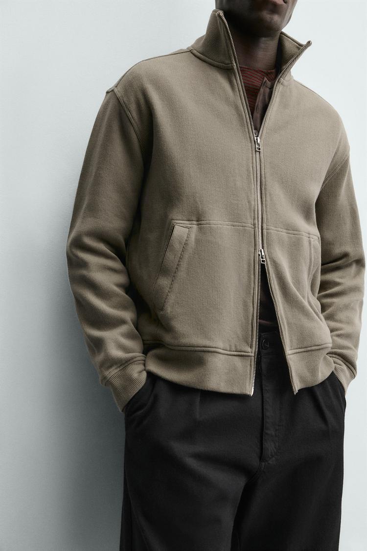 ZARA ТОЛСТОВКА В РУБЧИК ИЗ ТКАНИ ИНТЕРЛОК, БЕЖЕВЫЙ