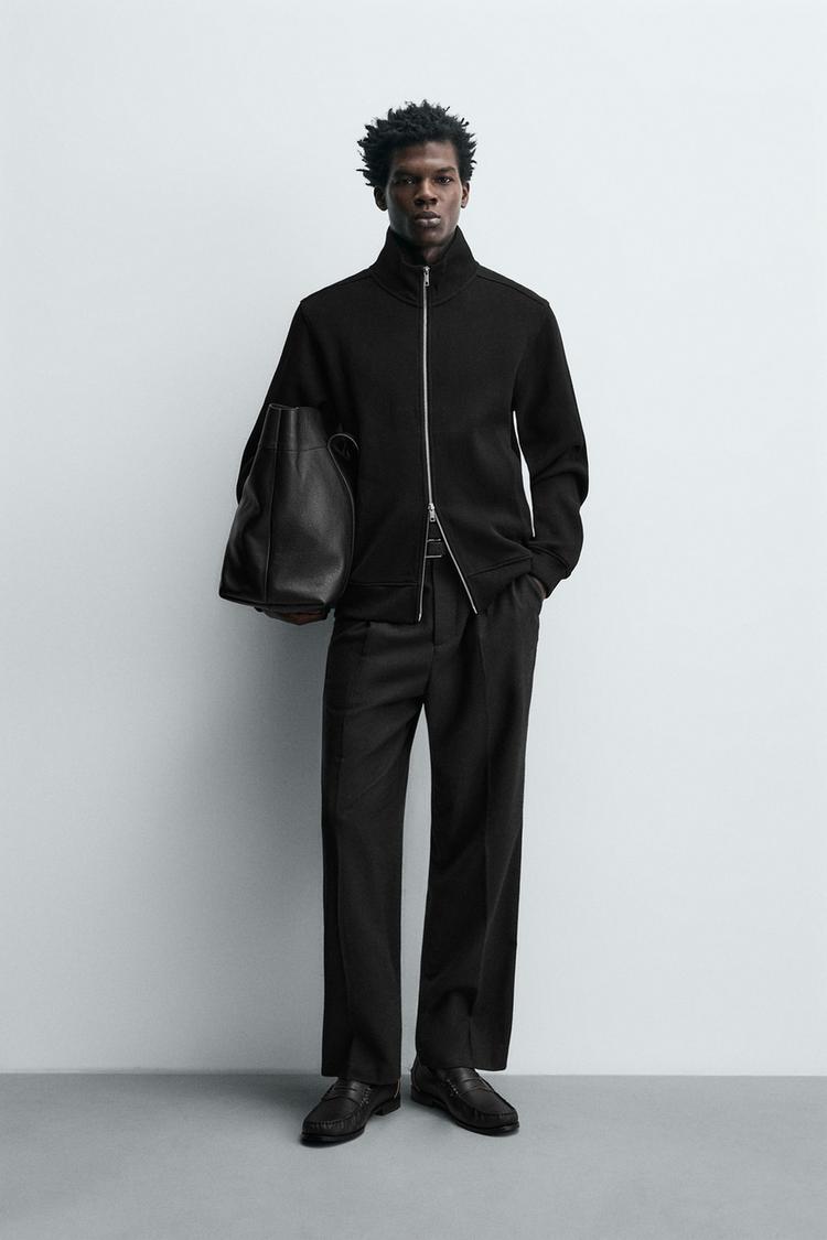 ZARA ТОЛСТОВКА В РУБЧИК ИЗ ТКАНИ ИНТЕРЛОК, ЧЕРНЫЙ