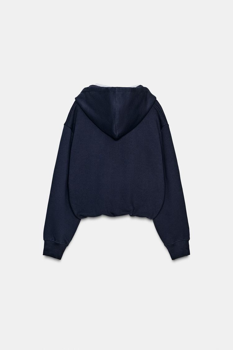 ZARA ТОЛСТОВКА В СТИЛЕ ПРЕППИ С КОНТРАСТНЫМИ ЭЛЕМЕНТАМИ, МОРСКОЙ СИНИЙ