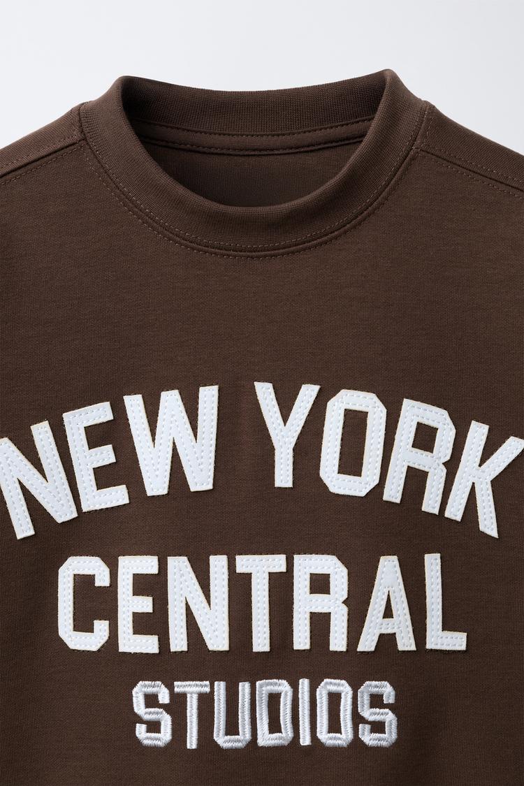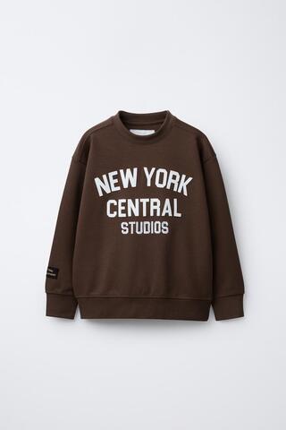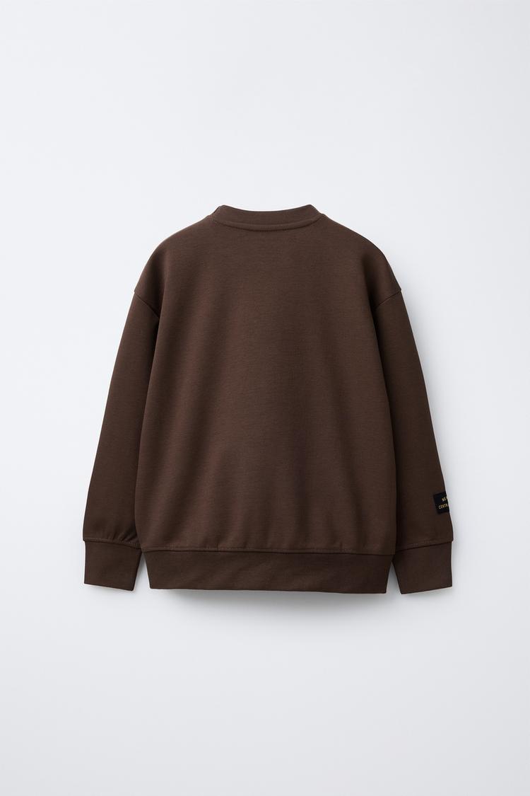 ZARA ТОЛСТОВКА VARSITY ИЗ ТКАНИ ИНТЕРЛОК, КОРИЧНЕВЫЙ