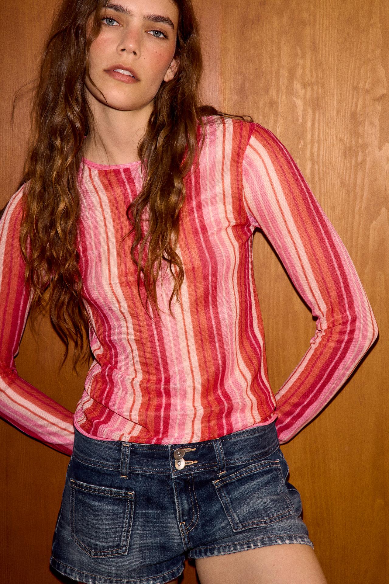 ZARA ТОНКИЙ ТРИКОТАЖНЫЙ ДЖЕМПЕР В ПОЛОСКУ, КРАСНЫЙ/БЕЛЫЙ