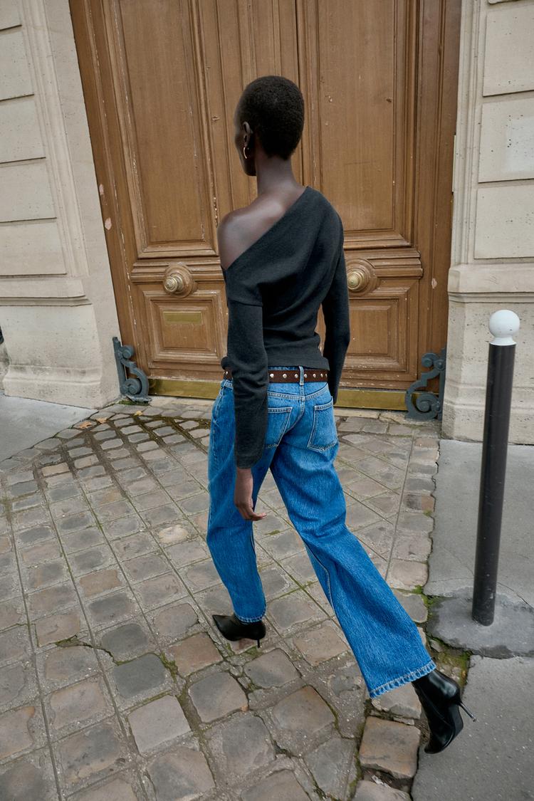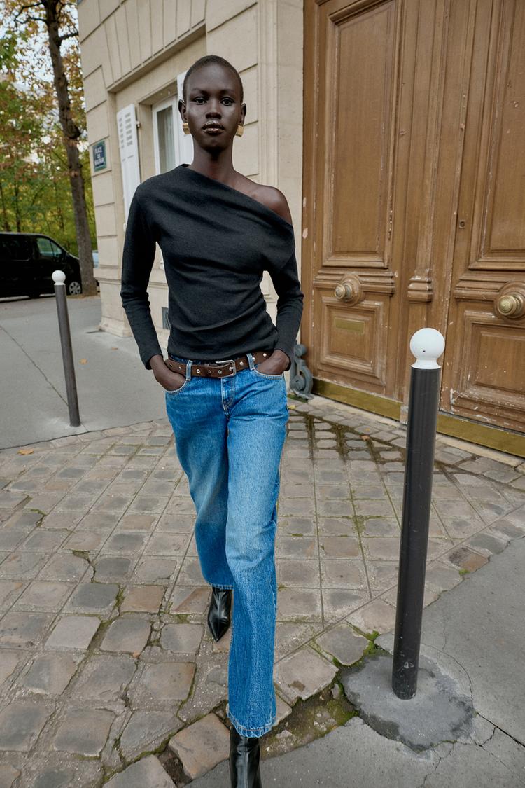ZARA ТОП АСИММЕТРИЧНОГО КРОЯ ИЗ МЯГКОЙ ТКАНИ, ЧЕРНЫЙ МЕЛАНЖ