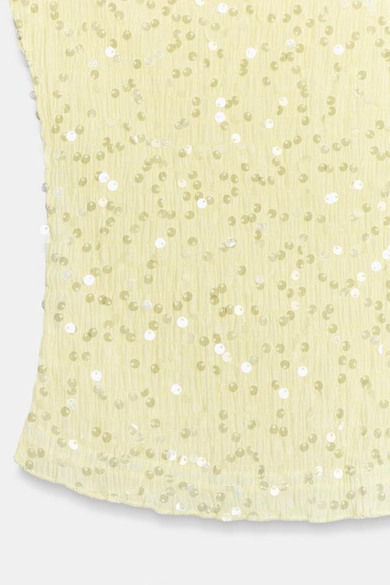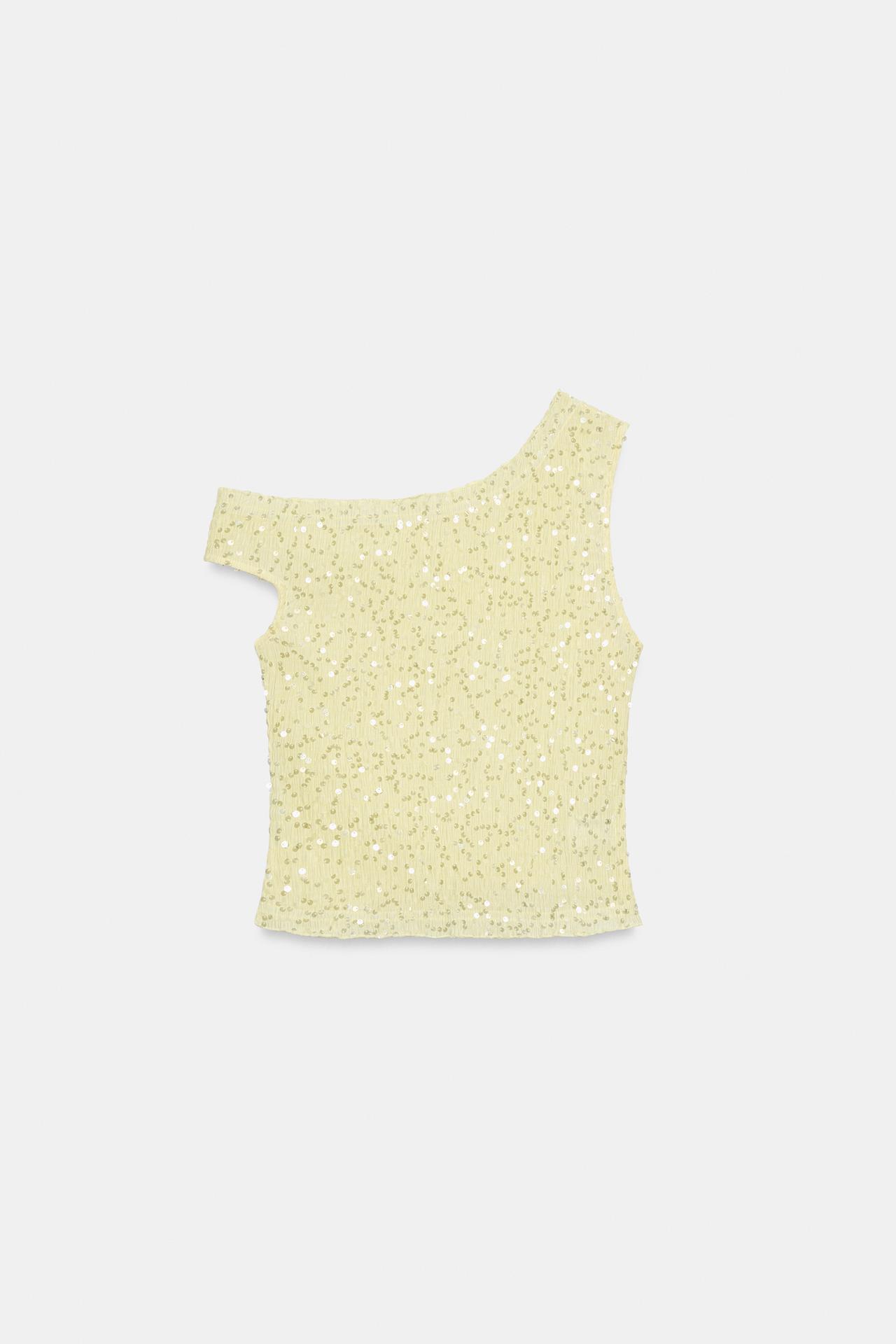 ZARA ТОП АСИММЕТРИЧНОГО КРОЯ С ПАЙЕТКАМИ, ЖЕЛТЫЙ