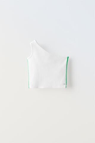 ZARA ТОП АСИММЕТРИЧНОГО КРОЯ С СЕРДЕЧКОМ, БЕЛЫЙ