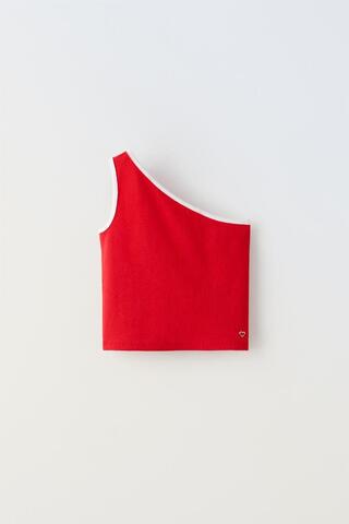 ZARA ТОП АСИММЕТРИЧНОГО КРОЯ С СЕРДЕЧКОМ, КРАСНЫЙ