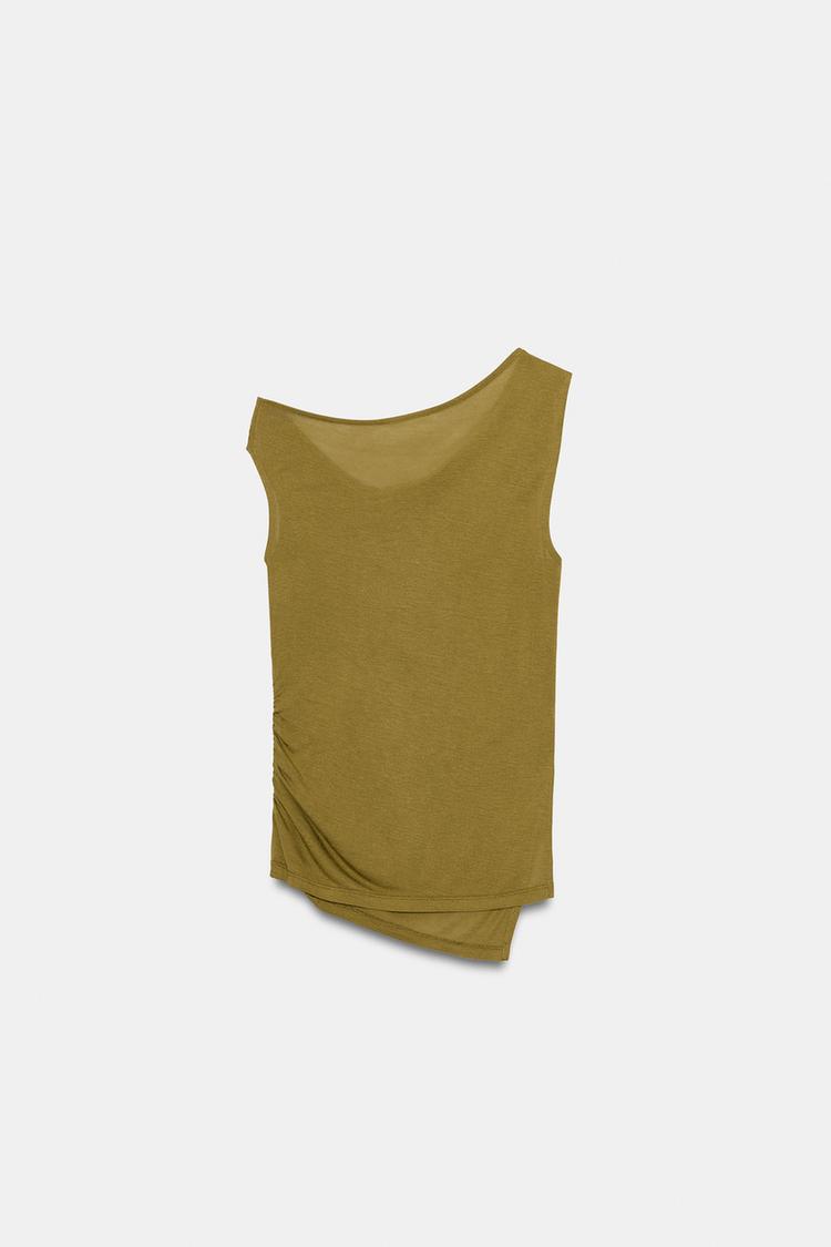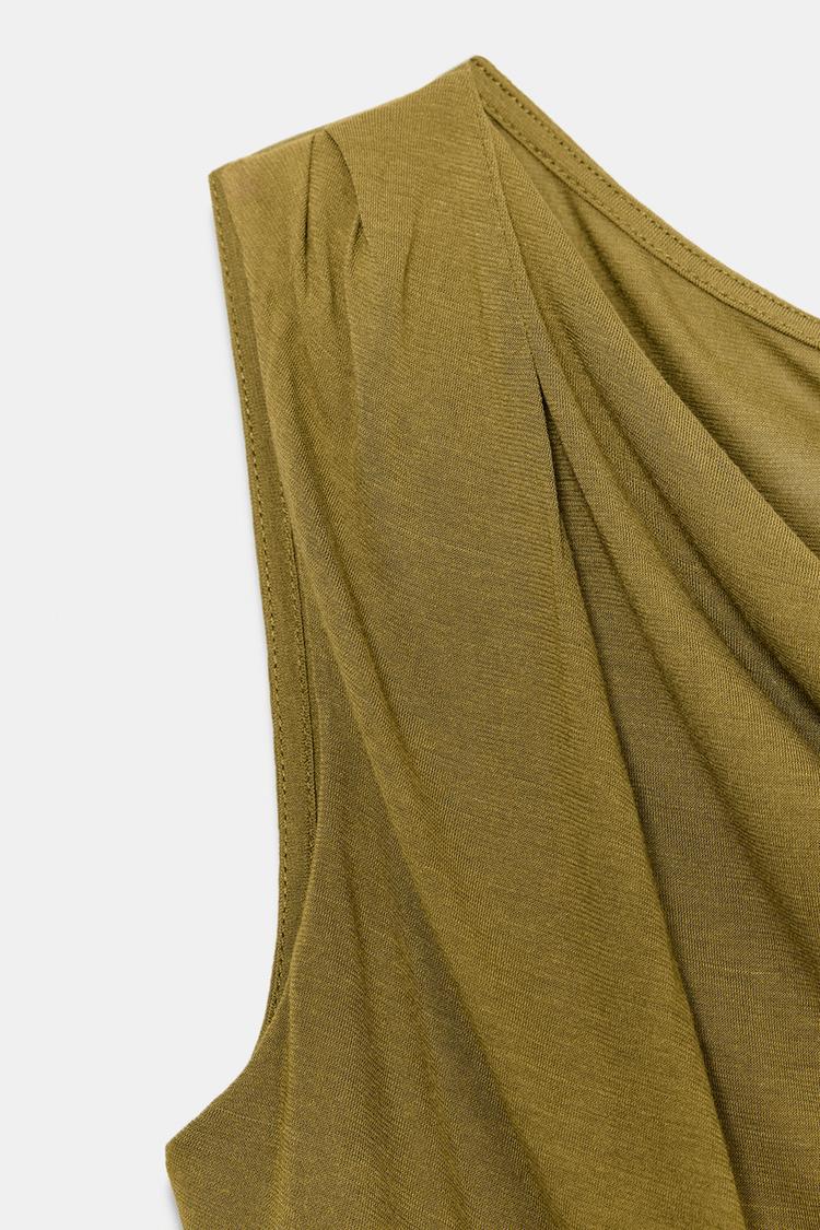 ZARA ТОП АСИММЕТРИЧНОГО КРОЯ СО СБОРКАМИ, ОЛИВКОВЫЙ