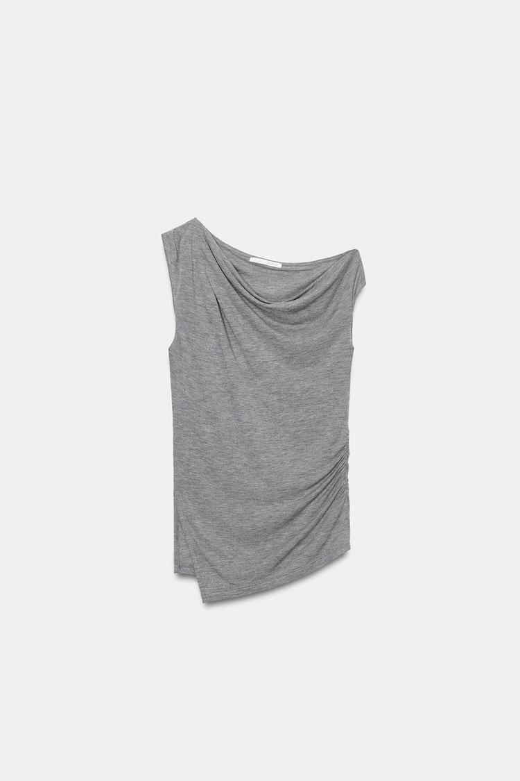 ZARA ТОП АСИММЕТРИЧНОГО КРОЯ СО СБОРКАМИ, СЕРЫЙ МЕЛАНЖ