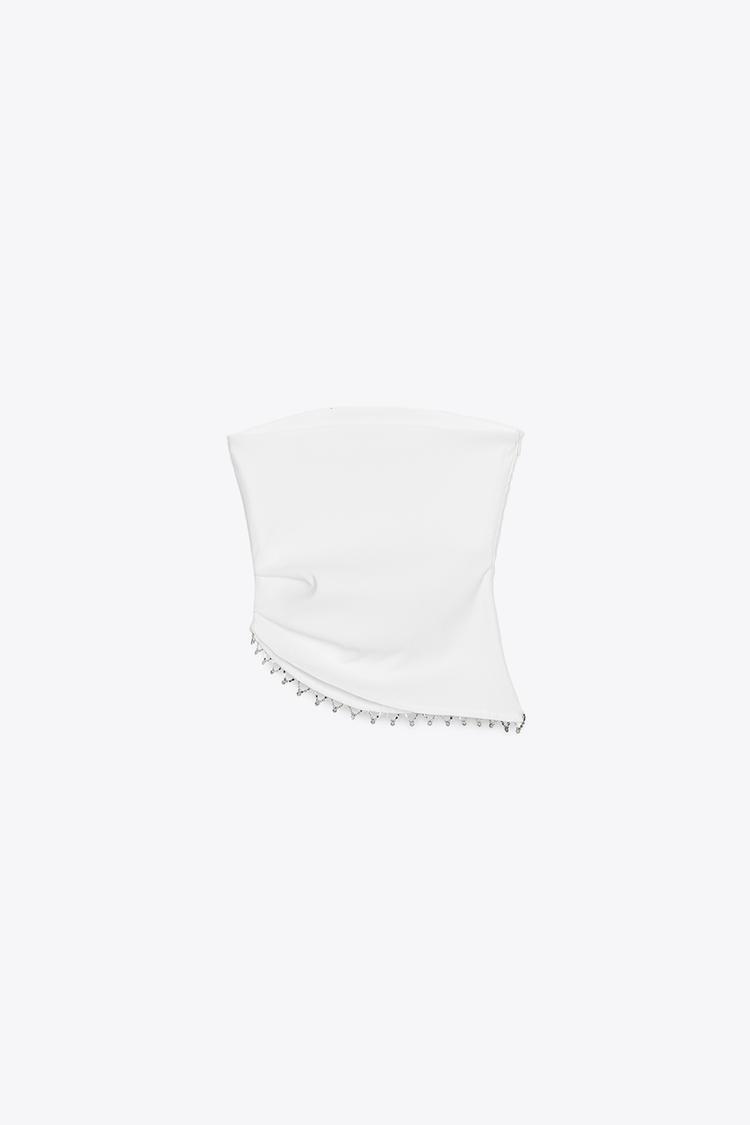 ZARA ТОП БЕЗ БРЕТЕЛЕЙ С ОТДЕЛКОЙ ДРАГОЦЕННОСТЯМИ, ЖЕЛТОВАТО-БЕЛЫЙ
