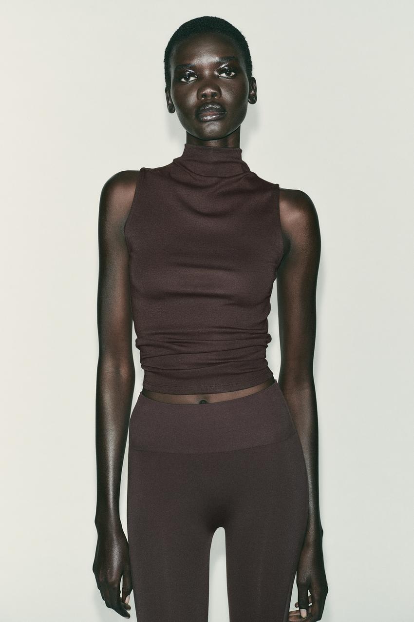 Топ из хлопка и модала. Высокий ворот и пройма без рукавов.