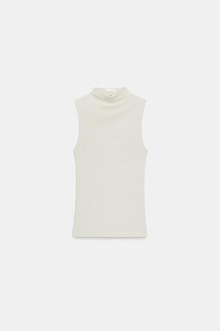 Топ из хлопка и модала. Высокий ворот и пройма без рукавов.