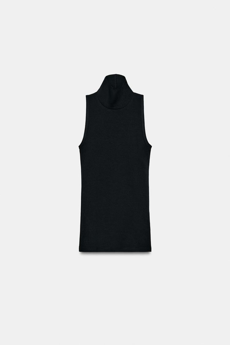 ZARA ТОП БЕЗ РУКАВОВ С ВОРОТНИКОМ-СТОЙКОЙ, ЧЕРНЫЙ