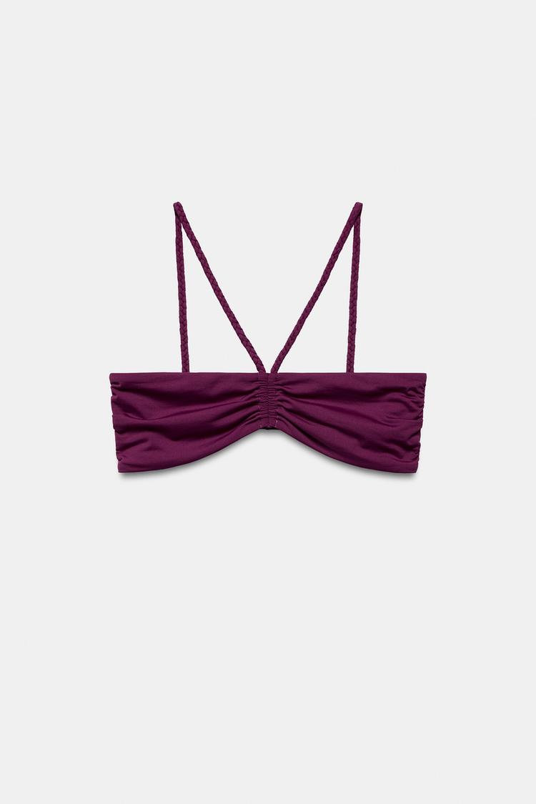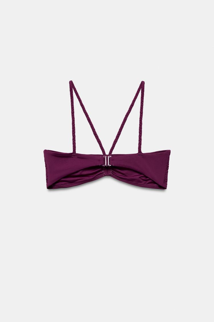 ZARA ТОП-БИКИНИ БАНДО С ПЛЕТЕНЫМИ БРЕТЕЛЯМИ, БАКЛАЖАННЫЙ