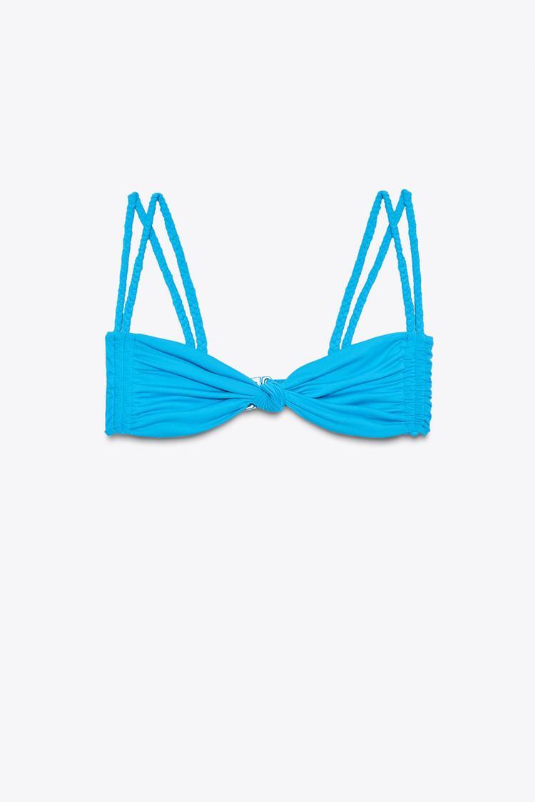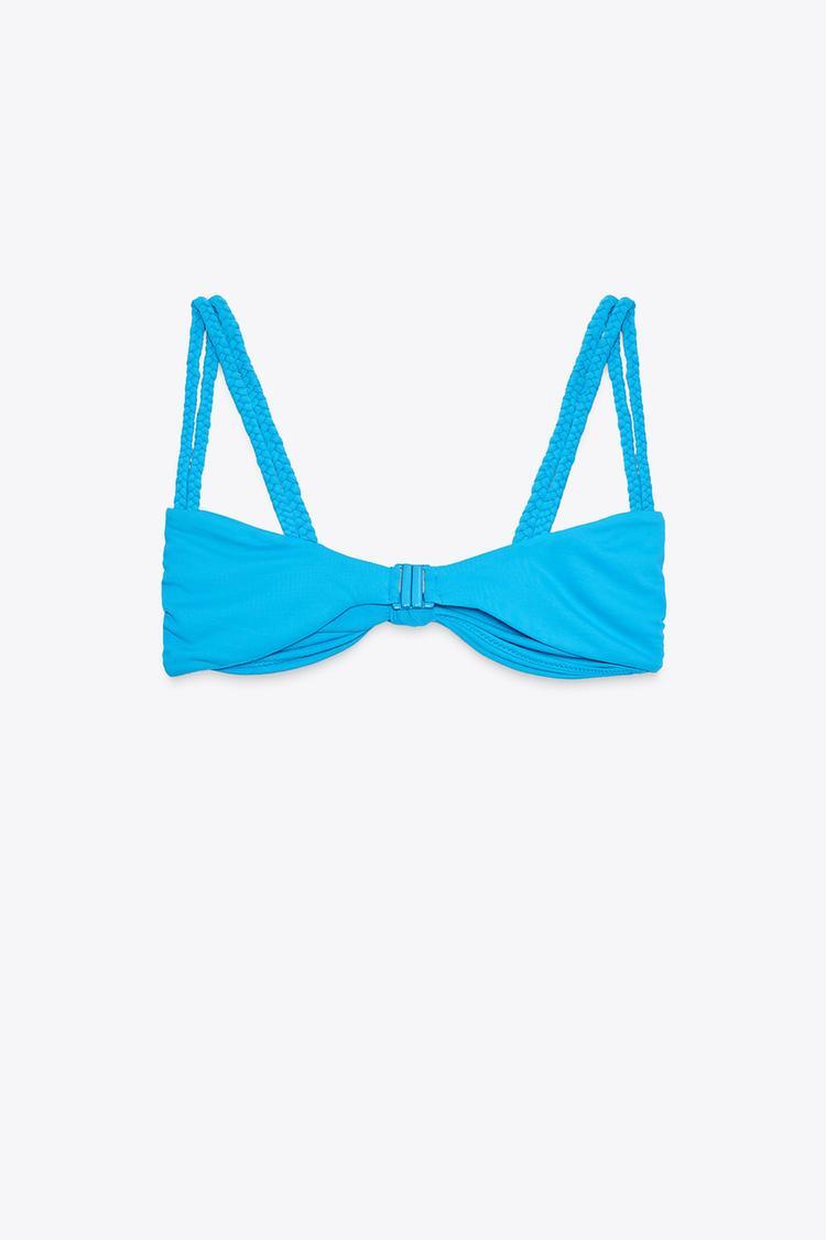 ZARA ТОП БИКИНИ С ДВОЙНЫМИ ПЛЕТЕНЫМИ БРЕТЕЛЯМИ, БИРЮЗОВЫЙ