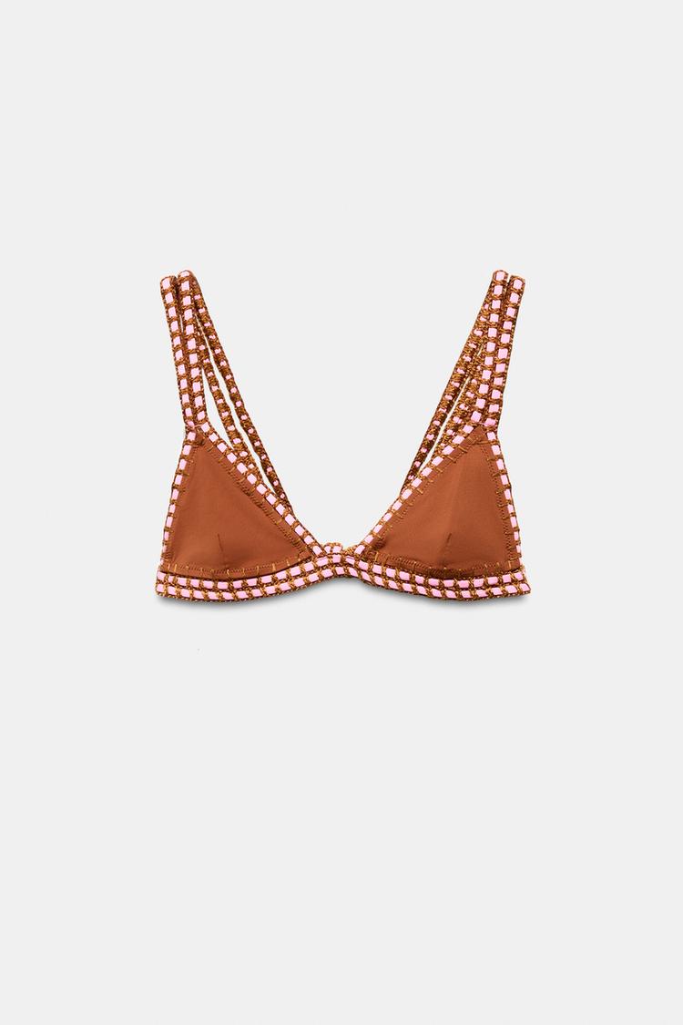 ZARA ТОП БИКИНИ С КОНТРАСТНЫМИ ДЕТАЛЯМИ, КАРАМЕЛЬНЫЙ