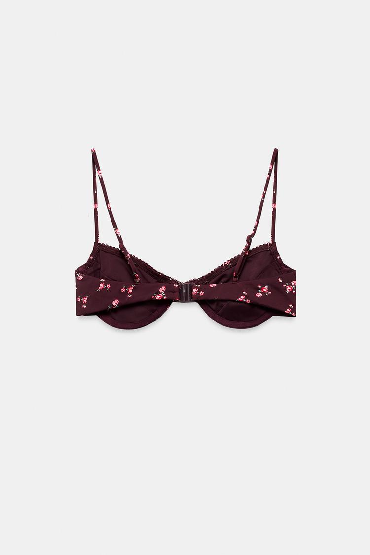 ZARA ТОП БИКИНИ С ЦВЕТОЧНЫМ ПРИНТОМ, БОРДОВЫЙ