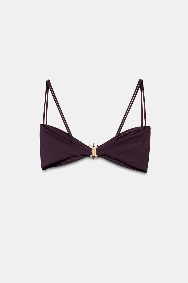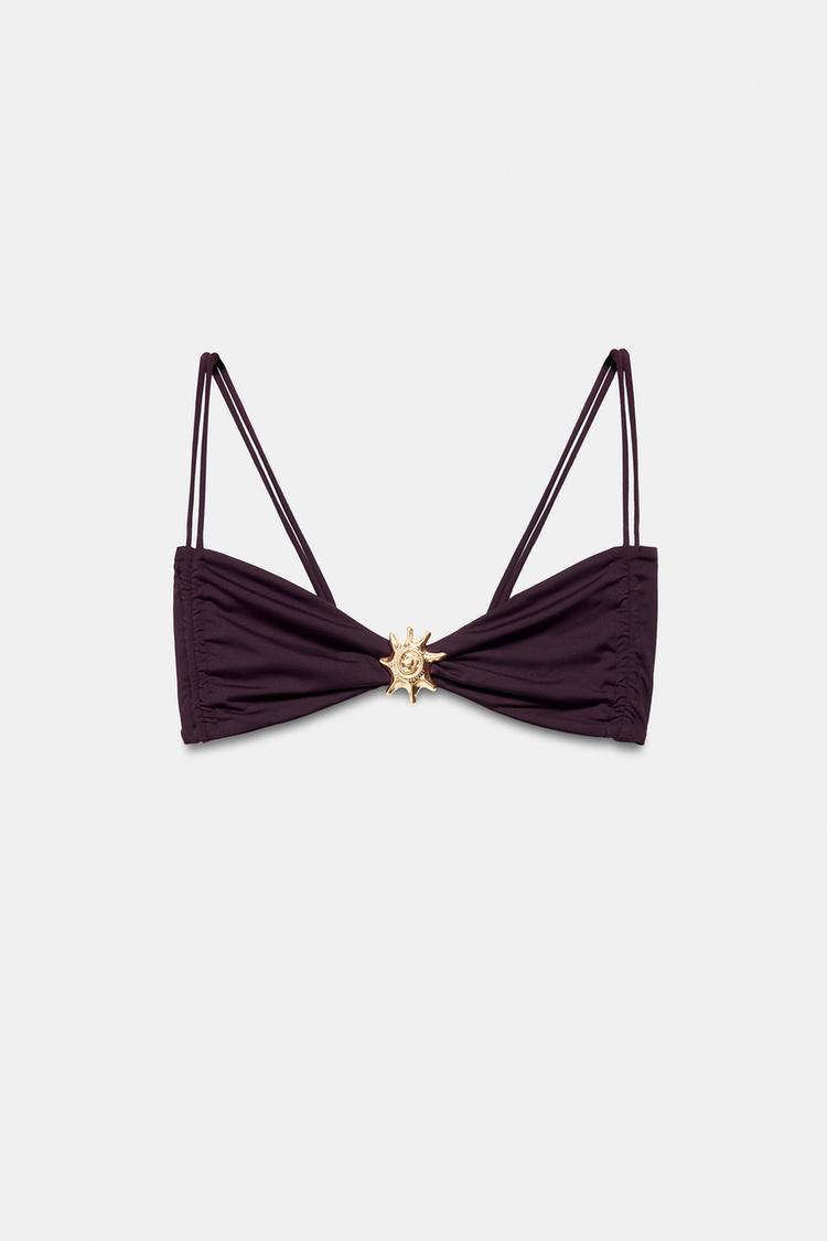 ZARA ТОП-БИКИНИ С ЖАТКОЙ И РАКОВИНОЙ, КОРИЧНЕВЫЙ