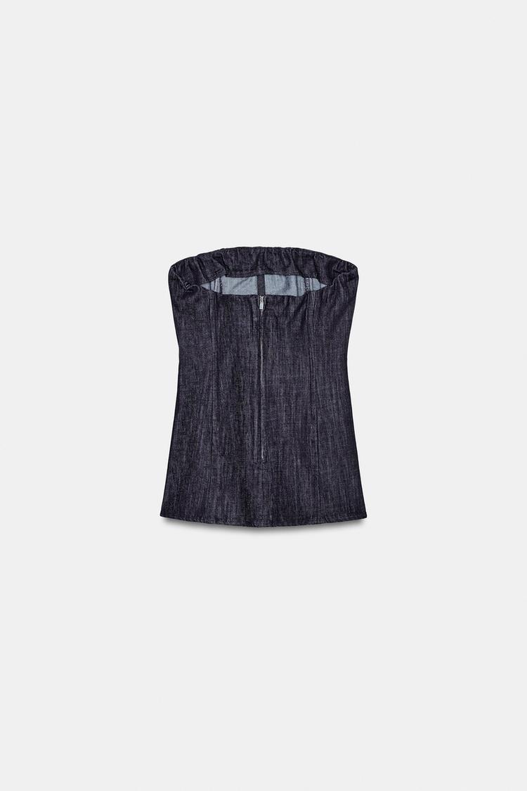 ZARA ТОП-БЮСТЬЕ ИЗ ДЕНИМА, ТЕМНЫЙ ИНДИГО