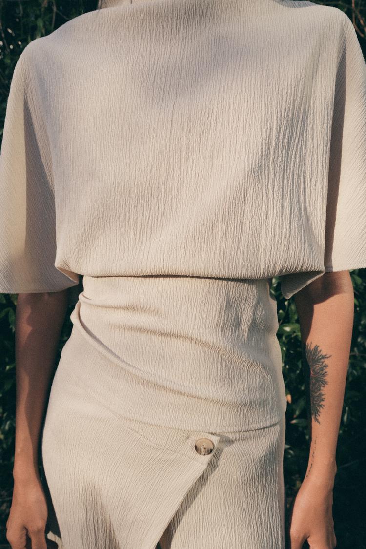 ZARA ТОП ФАКТУРНЫЙ СО СКЛАДКАМИ, БЕЖЕВЫЙ