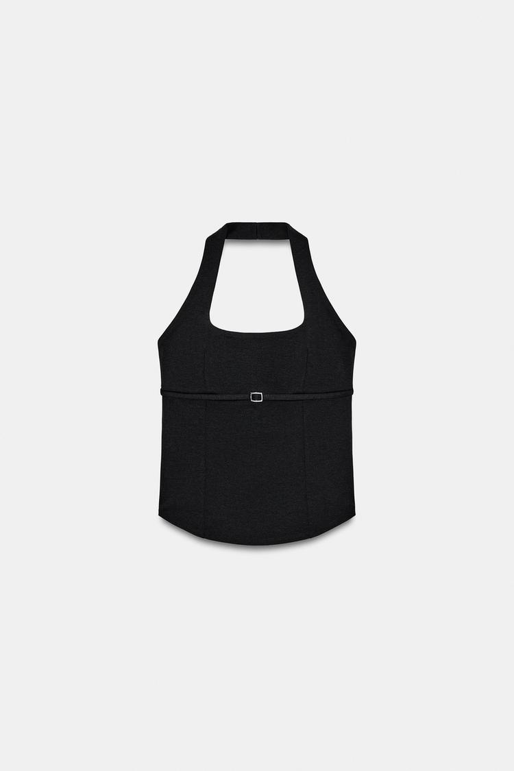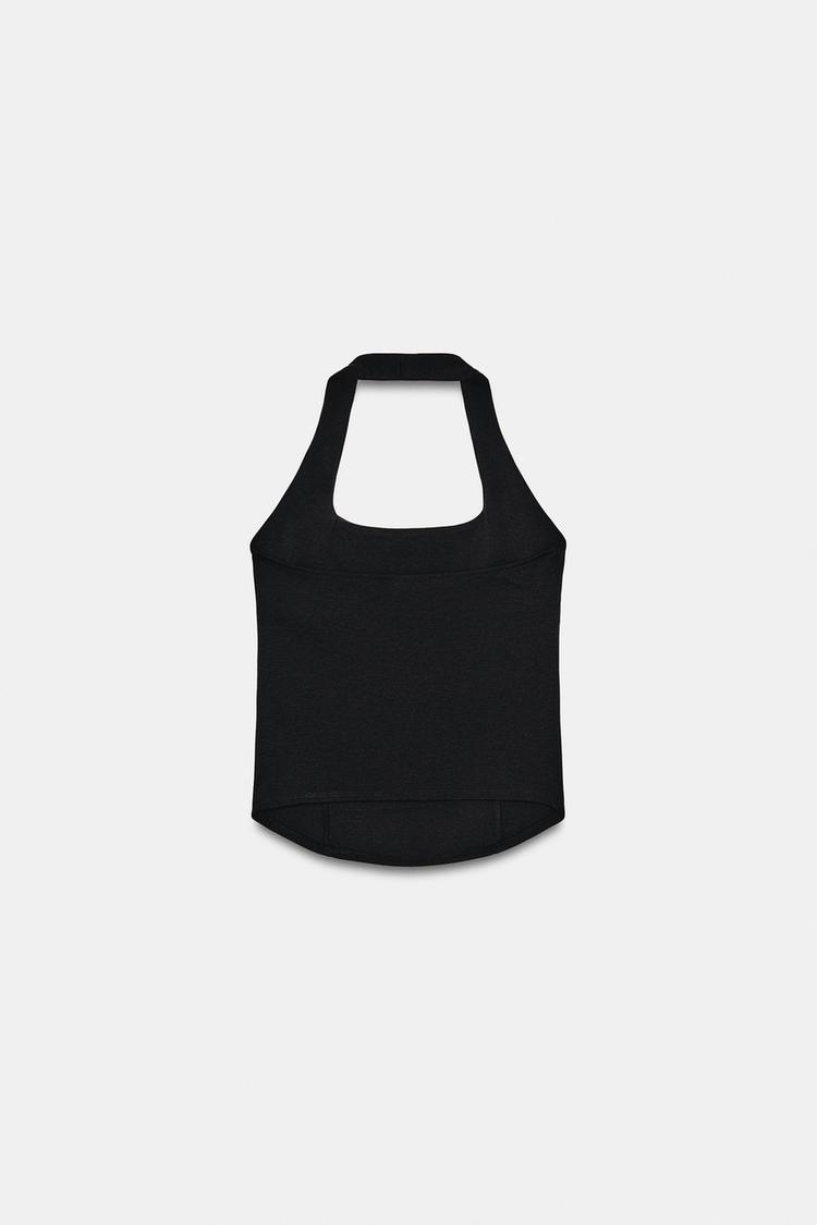 ZARA ТОП ХАЛТЕР ИЗ ТРИКОТАЖА, ЧЕРНЫЙ