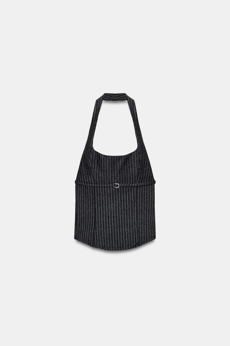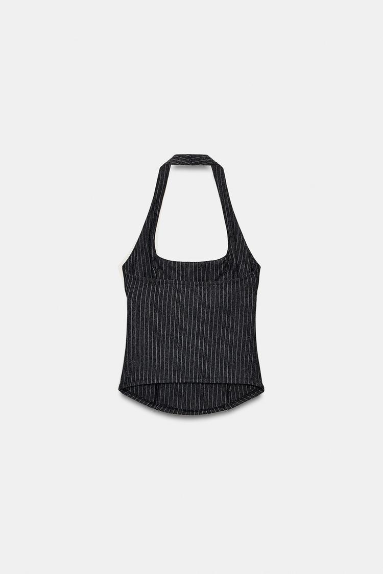 ZARA ТОП ХАЛТЕР ИЗ ТРИКОТАЖА, ТЕМНЫЙ МЕЛАНЖ